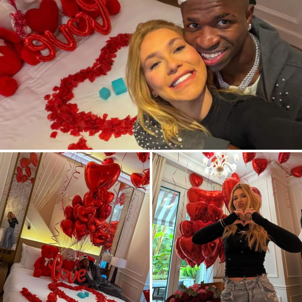 Vooral de eerste post die Fonseca en Vini Jr. deelden, spreekt voor zich. Het gaat om een driedelige post, waarop het kersvers stel te zien is in een kamer die overloopt van de liefdessymbolen. Rozenblaadjes, knuffelbeertjes, slingers, een massa hartvormige ballonnen: kosten noch moeite werden gespaard om te tonen hoe zot de twee van elkaar zijn.