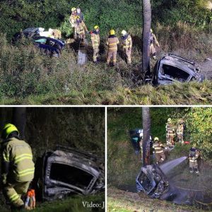 Auto breekt in tweeën en vliegt in brand bij zwaar ongeval in Lunteren