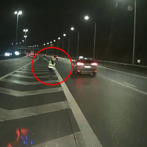 Op Facebook zijn dashcam-beelden opgedoken van een levensgevaarlijke situatie aan de oprit van de E314 in Aarschot. Een man in een geel fluohesje wandelt er — met…