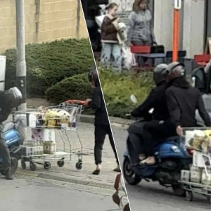 KIJK. Bromfietser haakt winkelwagen van Colruyt vast aan tweewieler en snort naar huis