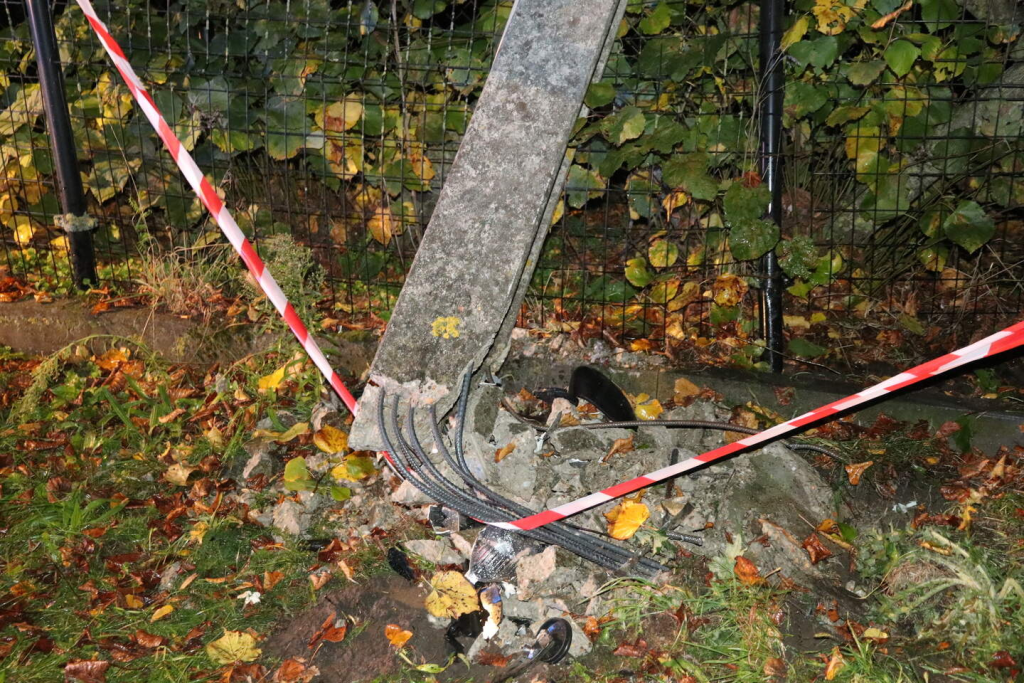 De klap was bijzonder hevig want de elektriciteitspaal knakte af. © ypw