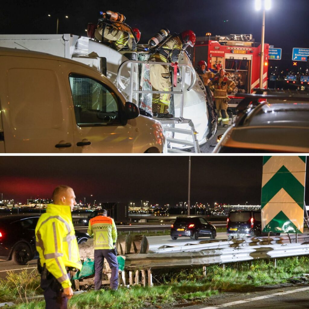 BADHOEVEDORP – Bij een eenzijdig ongeval is dinsdagochtend rond half zeven een bestelbus op zijn kant terechtgekomen bij knooppunt Badhoevedorp. De bestelbus reed op de A4 in de richting van de A9 toen het voertuig door de rimob-punt (rijbaanafscheiding) schoot en kantelde.