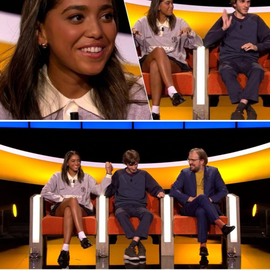 “Ik bol het sebiet af hé.” De in Londen geboren actrice Ayana Doucouré (23), bekend van ‘Knokke Off’, zette meteen de toon wanneer Erik Van Looy aan de 18-jarige Felix Heremans vroeg of hij Ayana een oud vrouwtje vindt. “Dat valt nog mee”, stamelde hij.De twee jongste deelnemers in het spel plaagden elkaar voortdurend. Wanneer Ayana ‘You Used To Call Me On My Cellphone’ van Drake begint te zingen, snoert Felix haar de mond: “Ja, ja, het is al goed.”