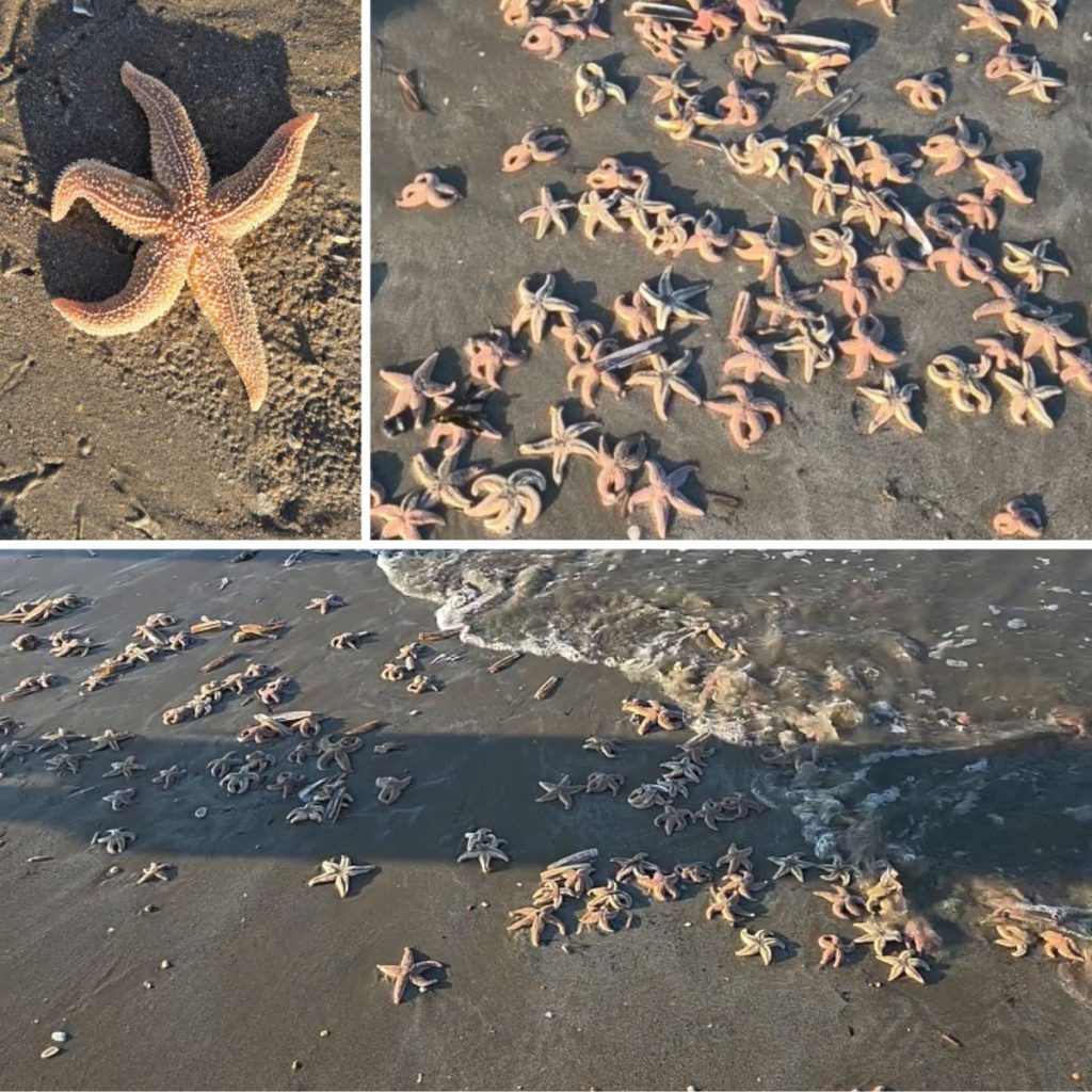 Opvallende beelden uit De Panne. Daar lagen vrijdag heel wat aangespoelde zeesterren op het strand.