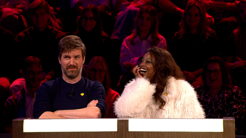 Zo waren de introductieminuten alweer voorbij gegleden. “Ik denk dat Nona en ik hier niet te veel zullen moeten babbelen”, zei Elodie Gabias. “Of het gaat een heel lange avond worden”, vulde Nona Van Braeckel aan. Waarop Steeno hen onderbrak. “Even tussendoor, dat ruikt hier keihard naar wiet. (grappend) Volgens mij zit hier een van de geluidsmensen…. Sorry, ik kwam er gewoon even tussen.”