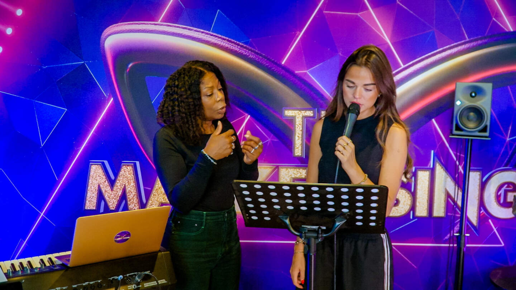 Samen met zangcoach Ibernice oefende Pauline al haar nummers in operastijl in. © VTM