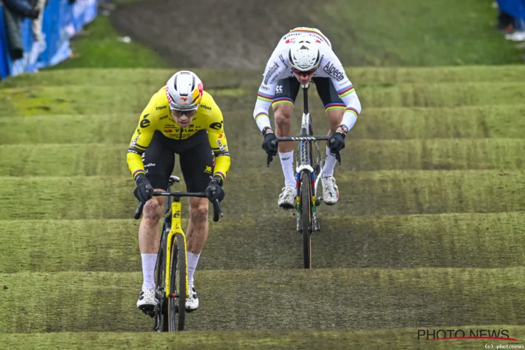 Van Aert had duidelijk betere benen dan in Dendermonde, Van der Poel was de enige die kon volgen. De wereldkampioen nam in de derde van acht ronden over en zette Van Aert stevig onder druk, het wiel kwijt speelde.