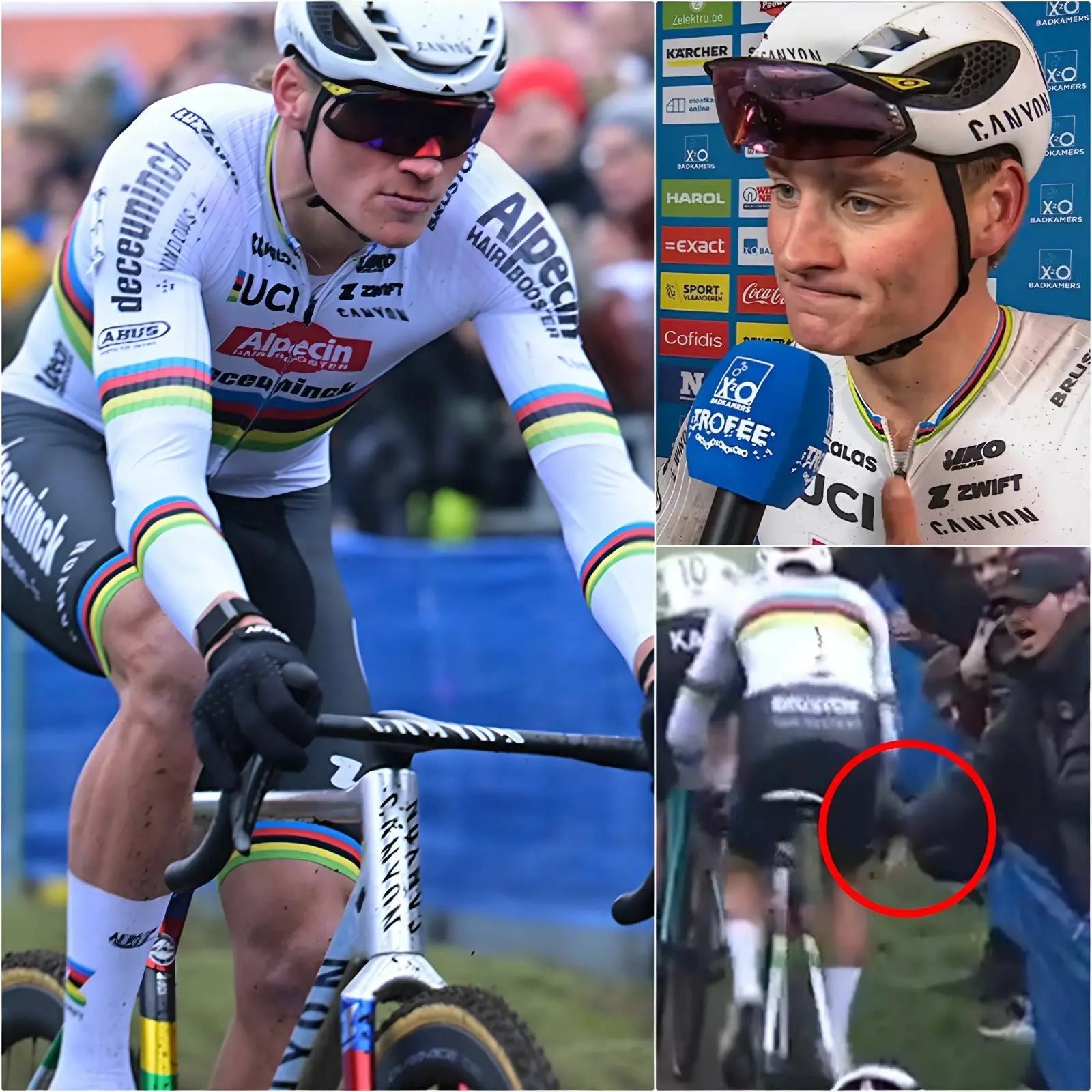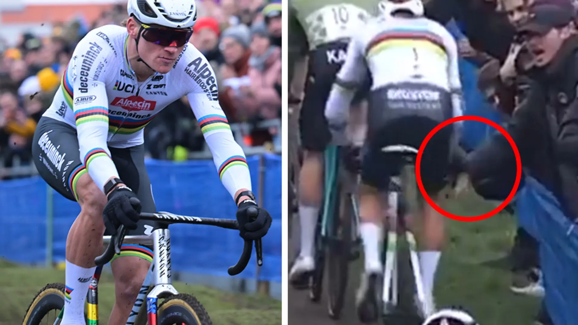 De fan stak zijn hand uit, raakte het stuur van Van der Poel en bracht hem bijna ten val in de openingsronde. Toch herstelde de Nederlander zich knap, won de cross overtuigend en toonde klasse door de supporter onmiddellijk te verdedigen.
