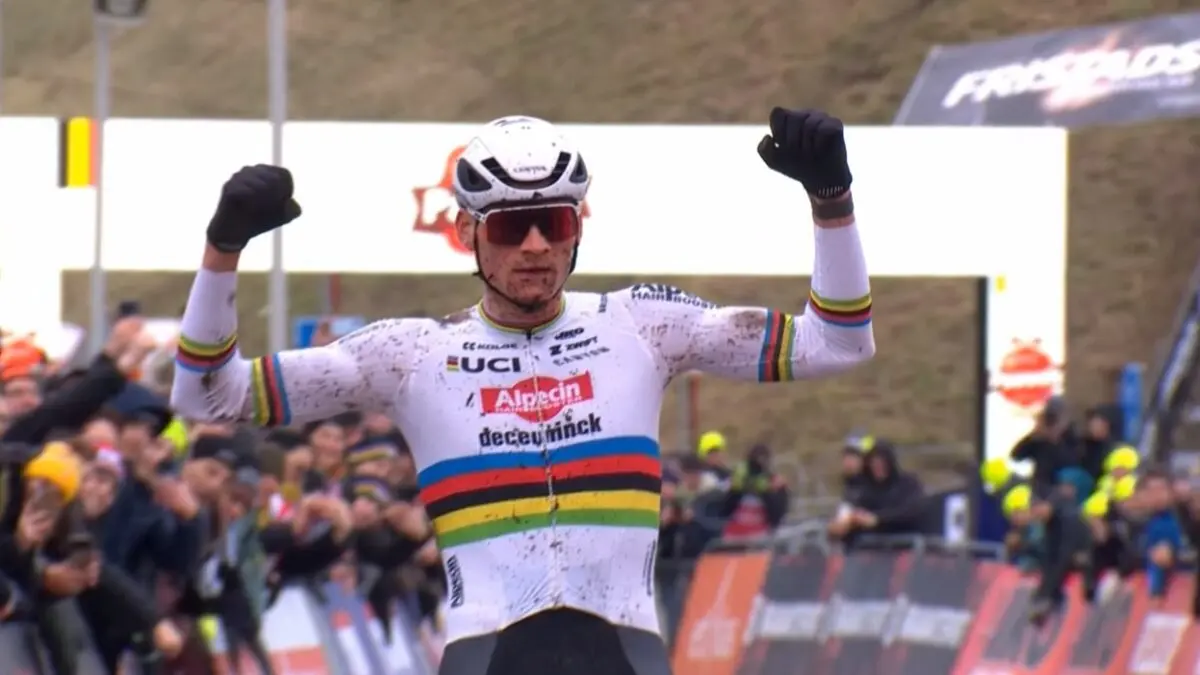 Ondanks de schrik reed Van der Poel een dominante race. Terwijl rivaal Wout van Aert pech kende met twee lekke banden op dezelfde steen, soleerde de Nederlander naar zijn zesde zege op rij dit seizoen.