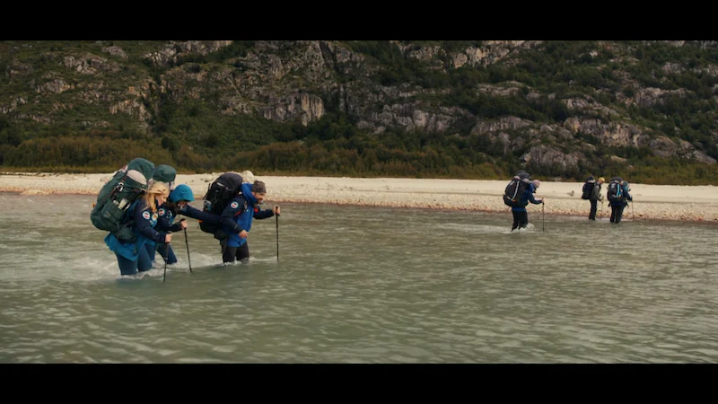 Wanneer alle taken verdeeld zijn en de rugzakken tot de nok gevuld zijn, wordt de groep gedropt bij Lago Plomo. Omringd door imposante bergen starten ze aan hun expeditie. “We gaan het moeten doen met elkaar en met wat er in die rugzak zit. That’s it. Verder is daar niets”, beseft Terryn.