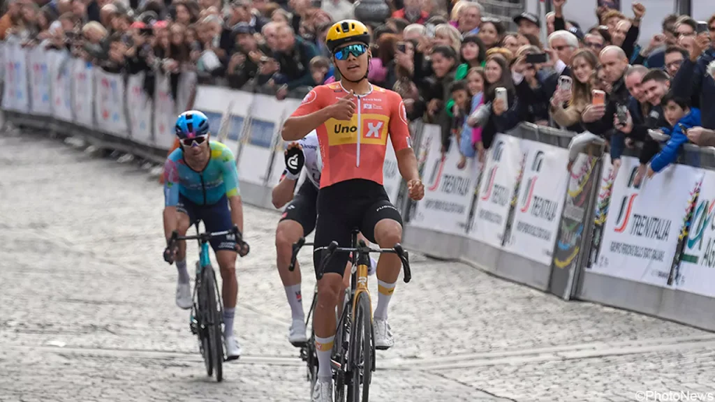 Een week na zijn wereldtitel gravel heeft Florian Vermeersch ei zo na een tweede profzege kunnen vieren. De Belg van UAE trok met een groepje van 4 naar de finish in Bassano del Grappa, maar het was verrassend genoeg de Noor Sakarias Løland die nog het meeste poeier over had.