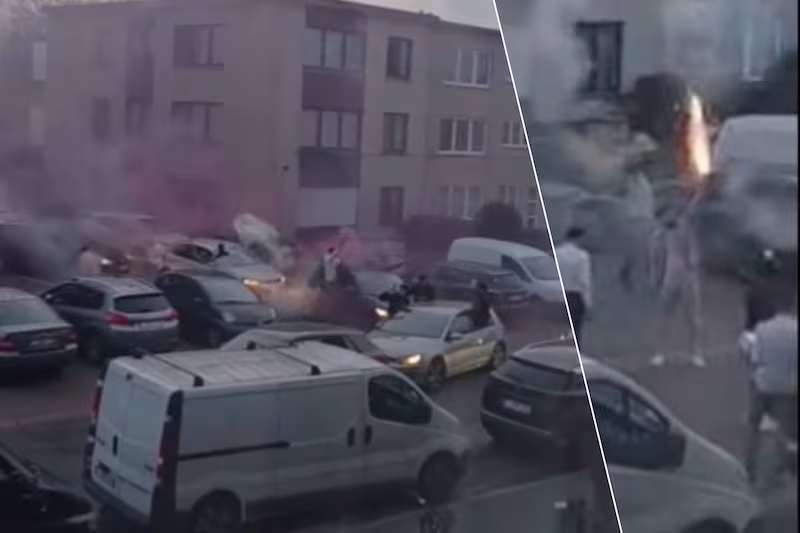 Een feestkaravaan heeft voor aanzienlijke overlast gezorgd in het Oost-Vlaamse Sint-Niklaas. Tientallen deelnemers schoten minutenlang vuurpijlen en rookbommen af en reden luid toeterend met hun auto’s door de straten. De politie stelde een proces-verbaal op.