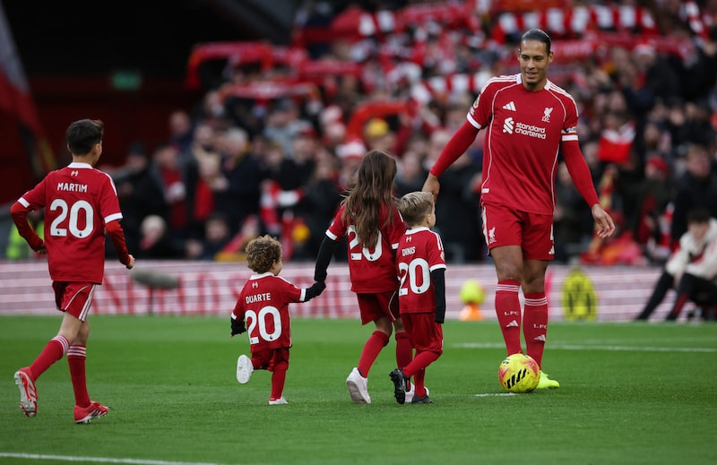 Een ontroerend moment in Engeland. Voor de aftrap van de match tussen Liverpool en Wolverhampton (2-1) stapten Dinis (4) en Duarte (2) – de twee zoontjes van de verongelukte Diogo Jota – als mascottes mee het veld op. Terwijl een geëmotioneerd Anfield uit volle borst ‘You’ll Never Walk Alone’ zong, trapte Liverpool-kapitein Virgil van Dijk een balletje met Dinis en Duarte.