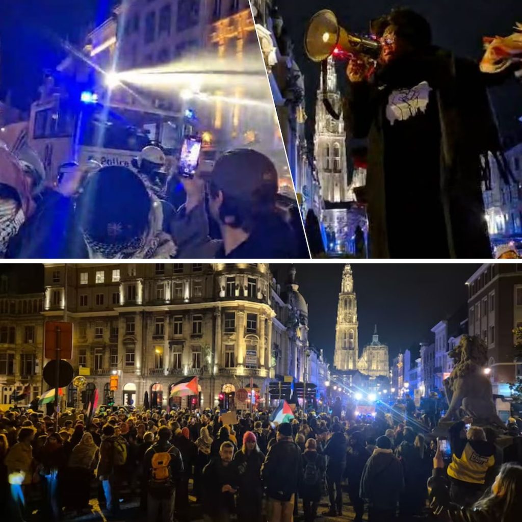 De politie heeft maandagavond met een waterkanon, pepperspray en drie bestuurlijke arrestaties stevig opgetreden tegen de pro-Palestijnse betoging. Die was door de stad Antwerpen niet toegelaten in het stadscentrum. De massa werd naar het Steenplein gedreven. “Dit was buitenproportioneel gedrag tegen vreedzame betogers” reageerde een aangedane Mama Jo, de leidster van de Antwerpse coalitie voor Palestina.