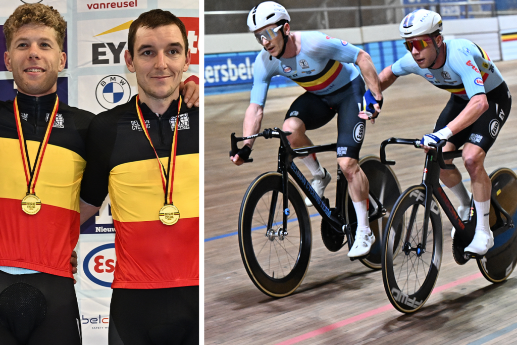 Wereldkampioenen Lindsay De Vylder (30) en Fabio Van den Bossche (25) hebben vrijdag verrassend naast de Belgische titel gepakt in de ploegkoers. In een erg spannend duel werden de twee op de openingsavond van het BK gevloerd door uitdagers Jasper De Buyst (31) en Jules Hesters (27).