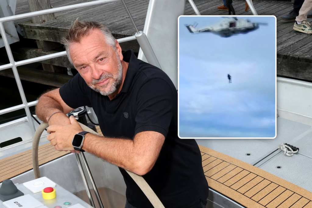 De eerste échte zeiltocht van Tom Waes (57) krijgt meteen een onverwacht einde. De VRT-presentator werd vlak voor de Belgische kust betrokken bij een reddingsoefening, waarbij een helikopter twee duikers op zijn boot dropte. Via sociale media deelde Waes beelden van het spectaculaire moment.