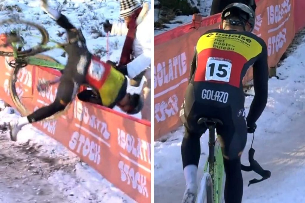 Het was niet de cross van Thibau Nys in Zonhoven. In de vijfde ronde zat hij in tweede positie. In een recht stuk verloor hij de controle en kon hij zijn voorwiel niet meer rechthouden. Nys moest zich in de Kuil al lopend verderzetten. Hij eindigt uiteindelijk nog op de achttiende plek.