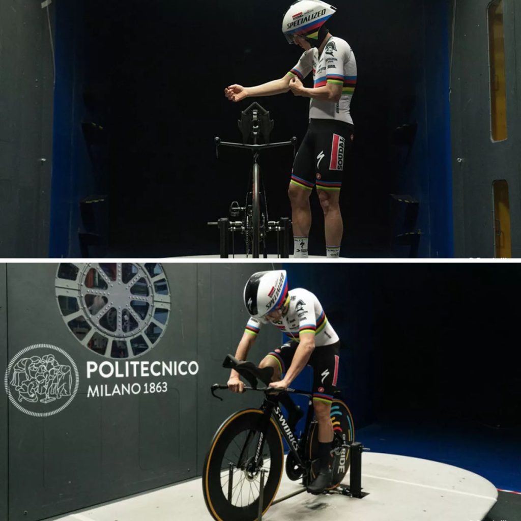 Evenepoel kampeerde naar verluidt een vijftal dagen in de windtunnel van fietsconstructeur Specialized om zijn positie (nog meer) te optimaliseren.