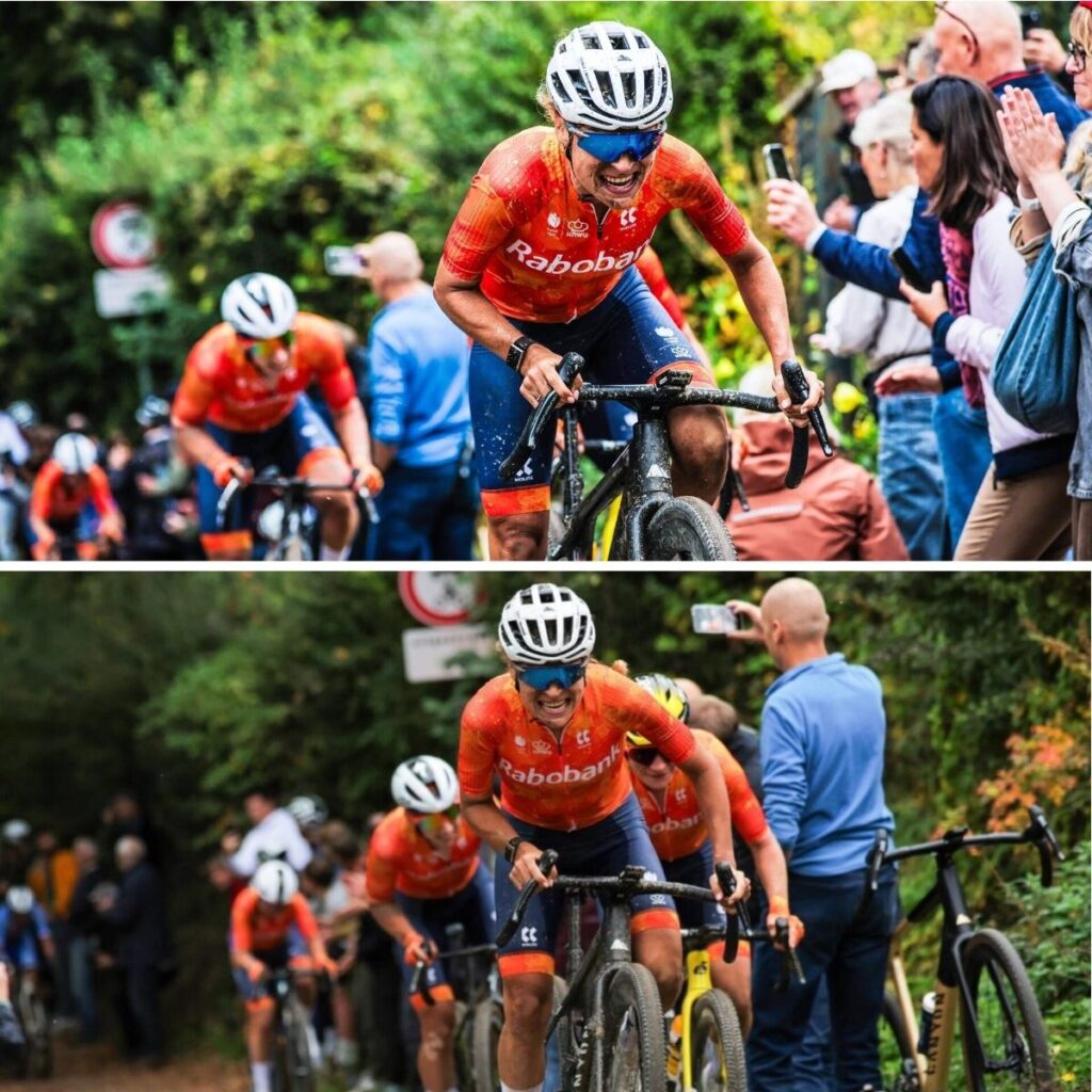 „Ik wilde gewoon het maximum voor mezelf eruit halen. Ook Laurens ten Dam, onze bondscoach, had vooraf nog benadrukt dat het WK gravel niet met dezelfde instelling gereden wordt als een EK op de weg. Dat heb ik in de finale iets te letterlijk geïnterpreteerd. Toch heb ik hier nu spijt van.”
