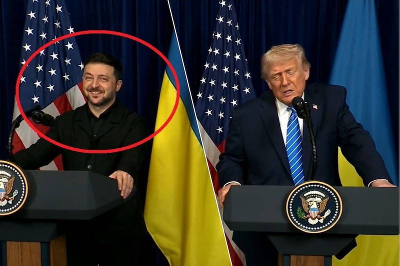 Op beelden van de persconferentie is te zien dat de wenkbrauwen van Zelensky op dat moment omhoog schieten. “Het klinkt een beetje vreemd”, aldus Trump, die niet doorheeft wat er naast hem gebeurt. Daarop schiet Zelensky openlijk in de lach en kan je hem zelfs “ja” horen zeggen. Maar meteen daarna legt hij zijn gezicht weer in de plooi.