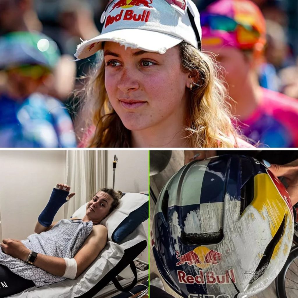 Een flinke domper voor Backstedt, maar ze lijkt zich bijzonder gelukkig te mogen prijzen dat het slechts bij enkele breuken bleef. Zo spreekt het verhaal van haar beschadigde helm boekdelen.