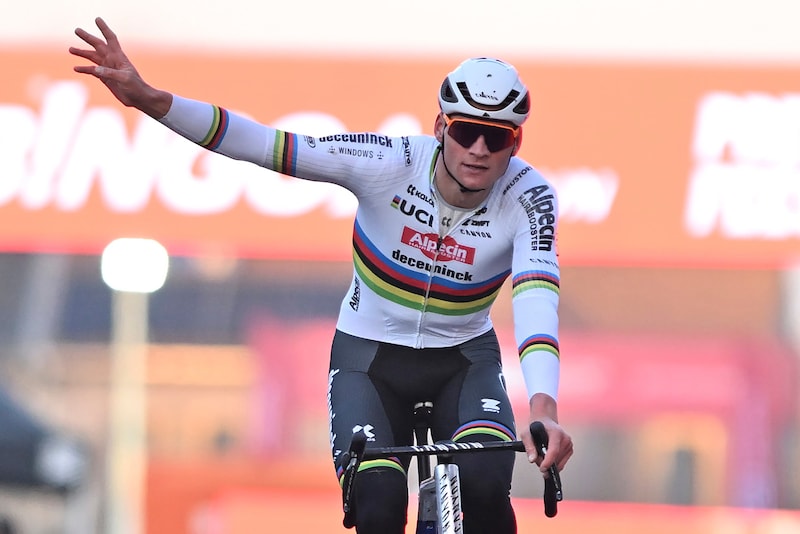 De wereldkampioen plaatste zijn enige échte versnelling van de cross, maar dat was genoeg om nog tweeënhalve ronde alleen te rijden en solo te finishen. Goed voor zijn vijfde zege op een rij in Gavere en ook zijn vijfde overwinning van dit seizoen. Met zijn overwinning nadert Van der Poel nu zelfs al tot op één punt van Wereldbeker-leider Laurens Sweeck.